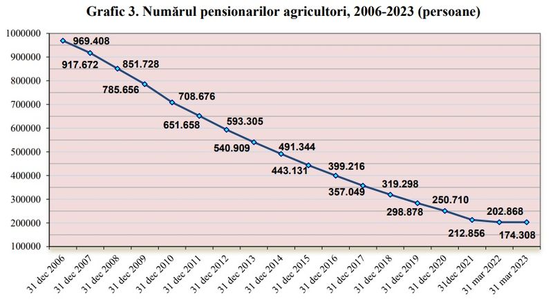 Dar restul de 64.000 de pensionari agricultori sunt plătiți sub pensia minimă, adică încasează doar 800 de lei. Dacă se va recalcula pensia minimă de la 1 ianuarie 2024, pensia acestor agricultori va crește cu peste 50 de procente.