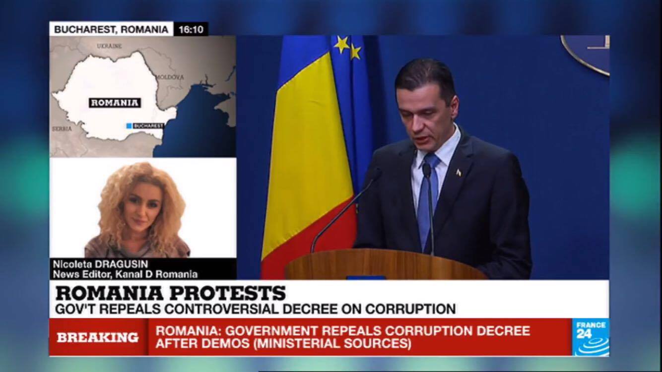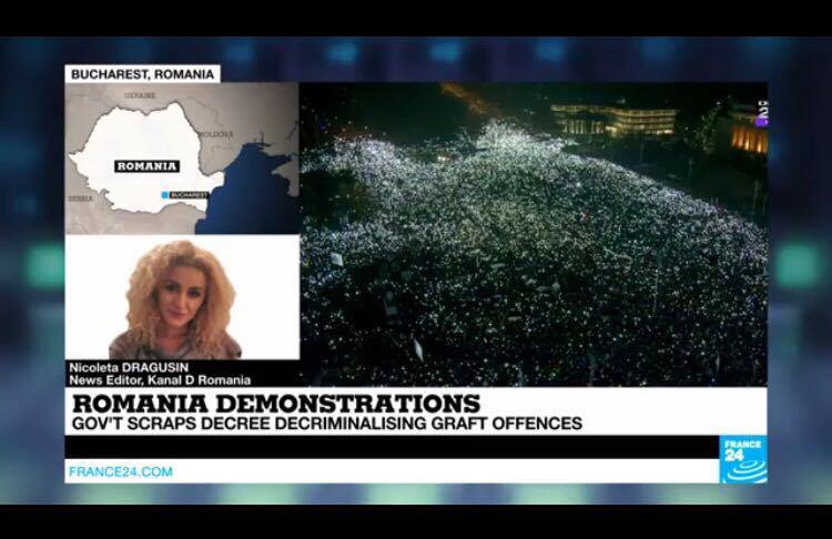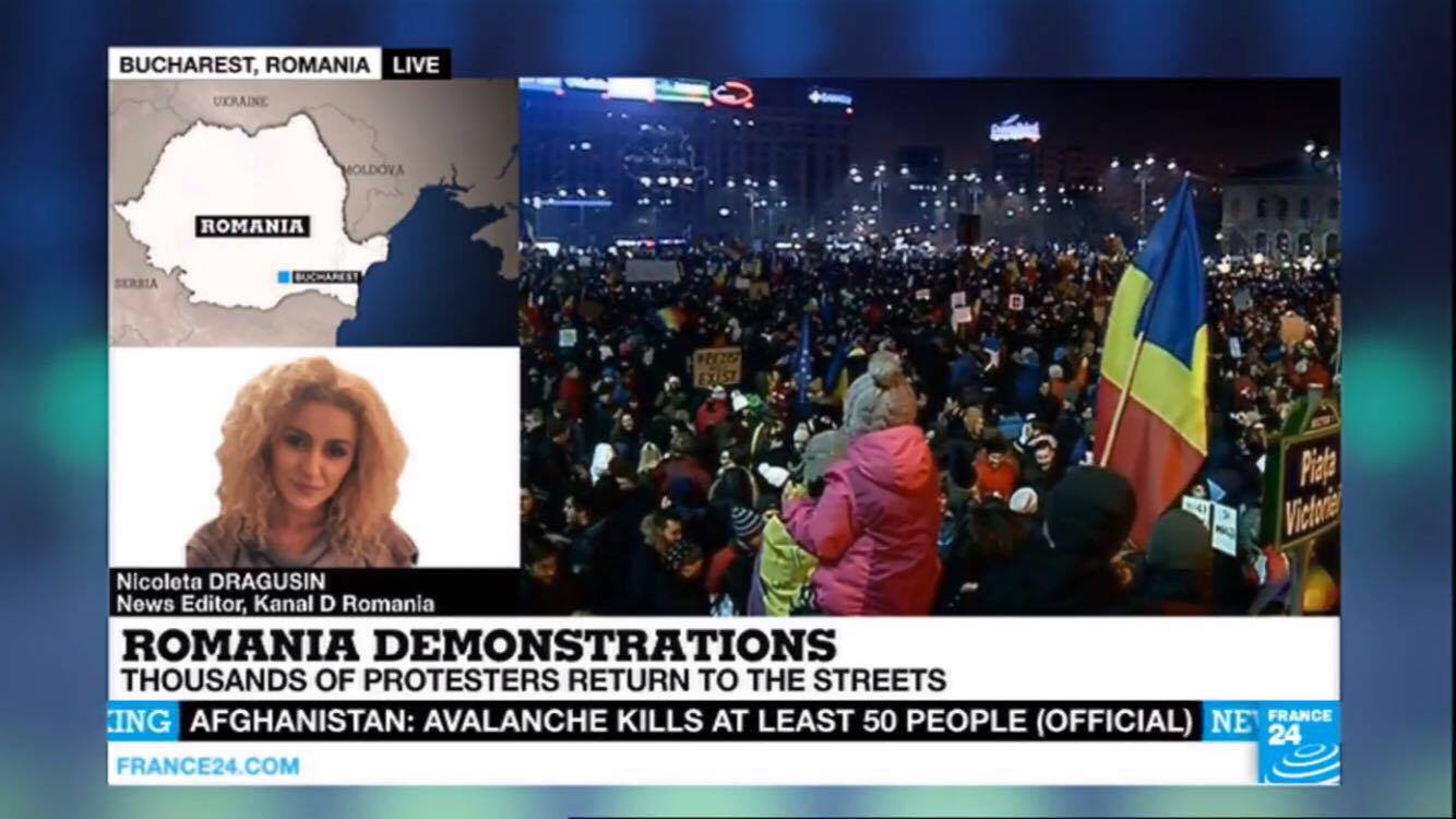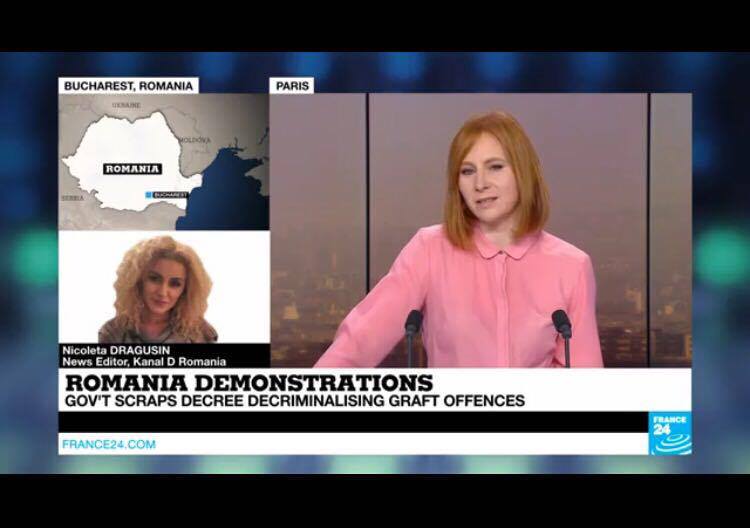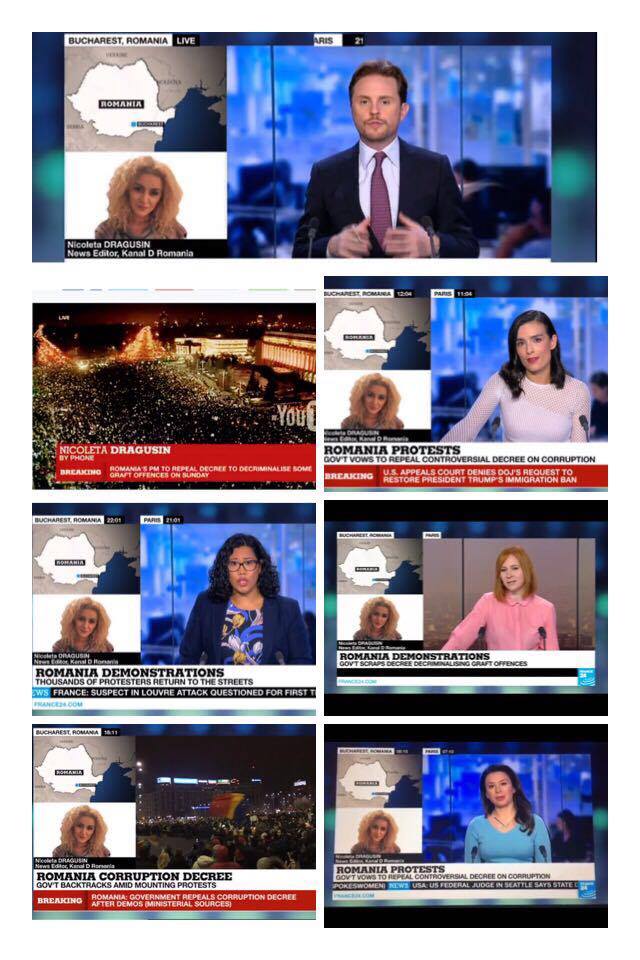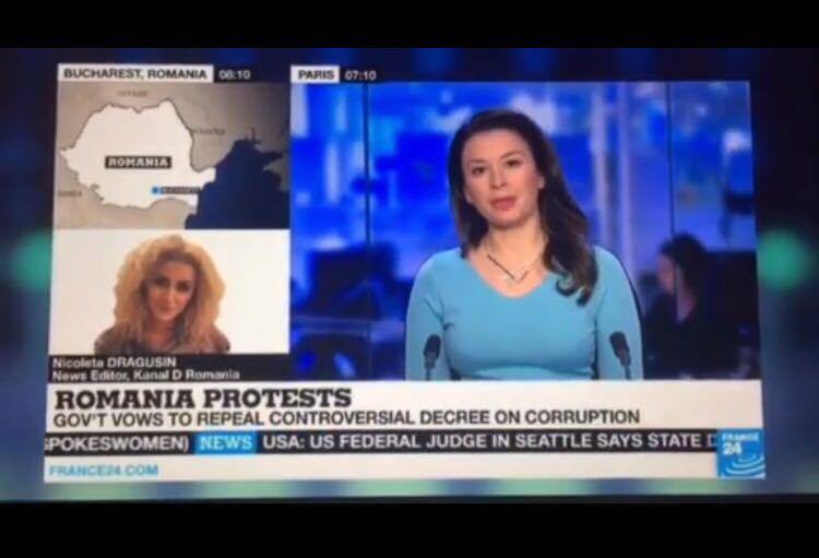 Situatia din Romania este de interes major pentru intraga lume. Televizunea de stiri France24, care emita international, transmite in toate jurnalele informatii complete si actualizate despre protestele din tara si reactiile politice.