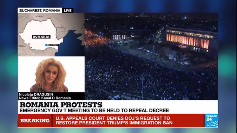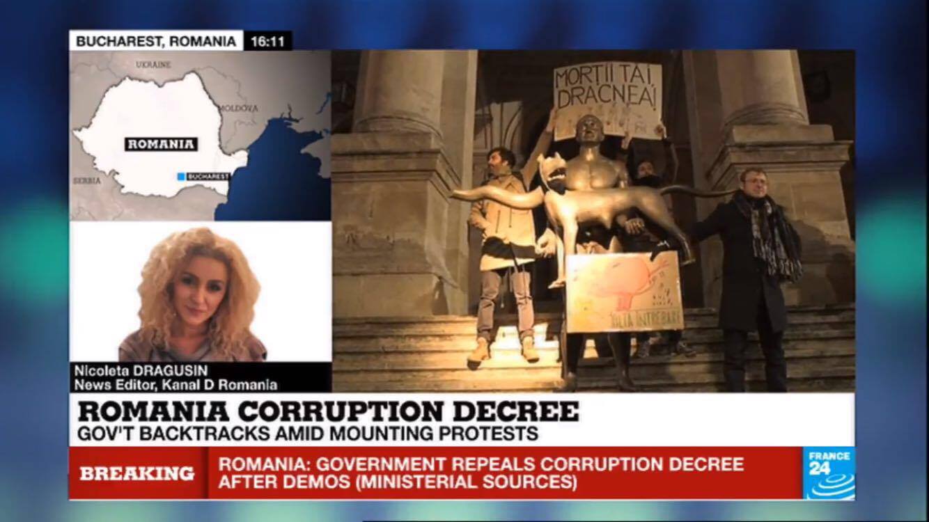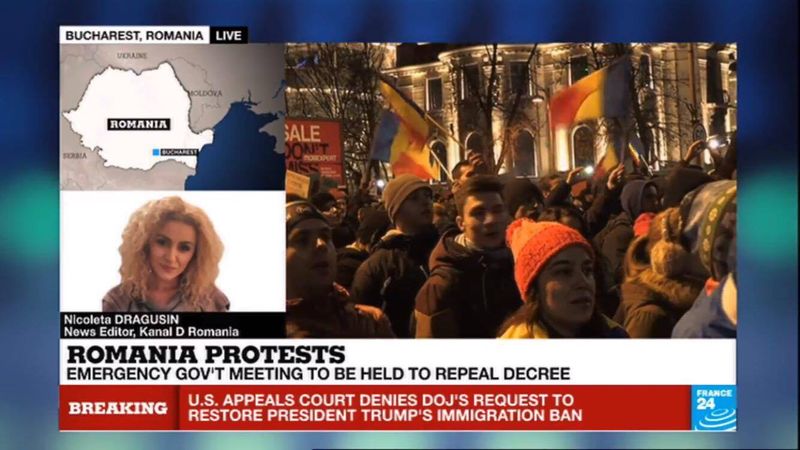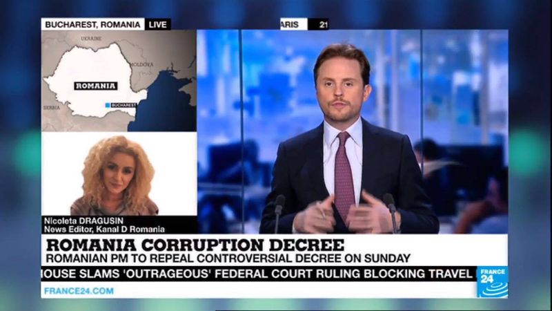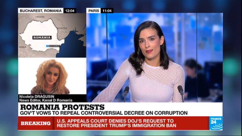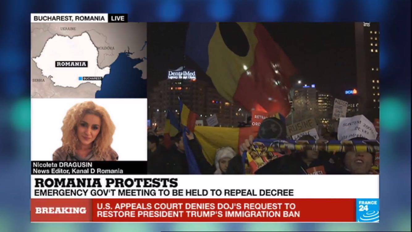 Situatia din Romania este de interes major pentru intraga lume. Televizunea de stiri France24, care emita international, transmite in toate jurnalele informatii complete si actualizate despre protestele din tara si reactiile politice.