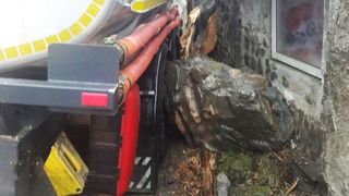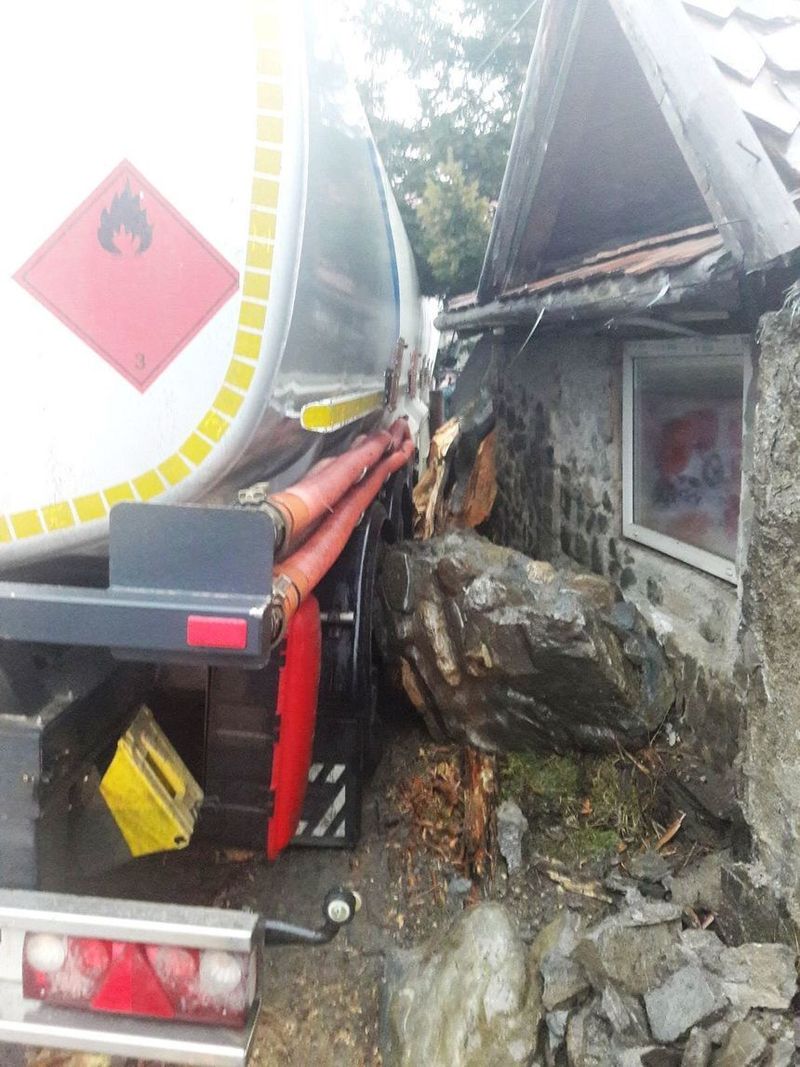 O cisterna cu benzina a fost implicata intr-un incident rutier, miercuri, in localitatea brasoveana Zarnesti, unde s-a izbit de gardul unei cas