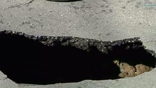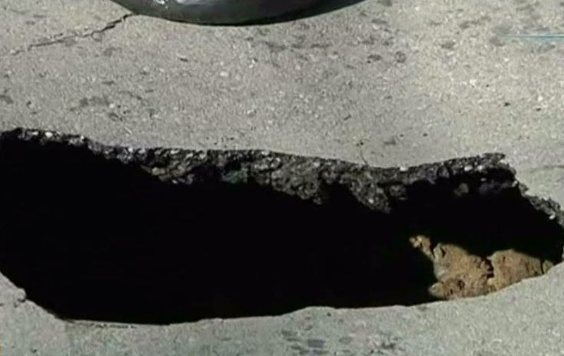 Pe cat de imensa groapa, pe atat de mare pericolul. Craterul s-a format pe o strada intens circulata din oras si i-a lasat masca pe trecatori.