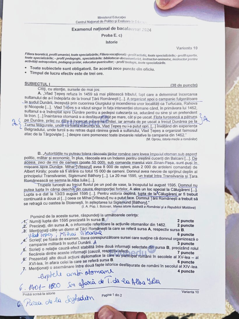 La proba de istorie au existat, de asemenea, perle ale elevilor. Este ireal ce au putut scrie aceștia pe foaia de examen.