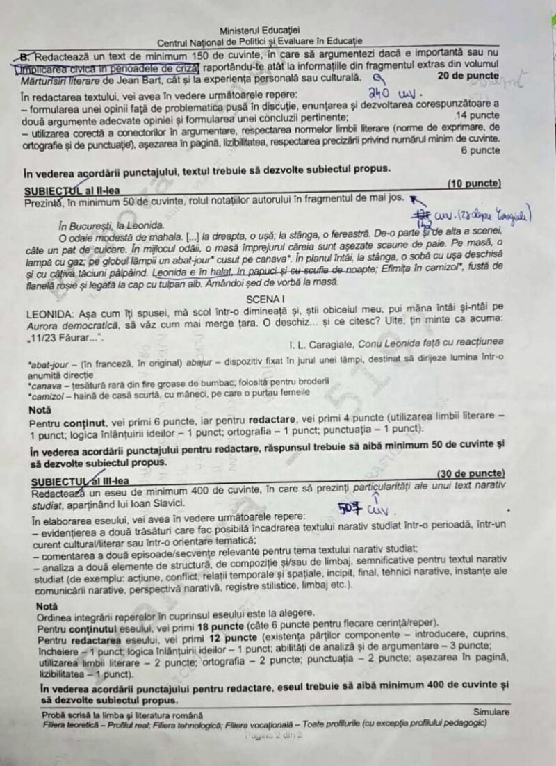 Perle amuzante se găsesc și în eseurile elevilor elaborate la subiectul al III-lea. Acolo au avut de redactat un eseu de minimum 400 de cuvinte, în care să prezinte particularități de construcție a personajului într-un text narativ studiat al lui Ioan Slavici. Mulți dintre liceeni nu s-au sfiit să caracterizeze diferite personalități ale vremii actuale, în lipsa unor cunoștiințe a cerinței cerute.
