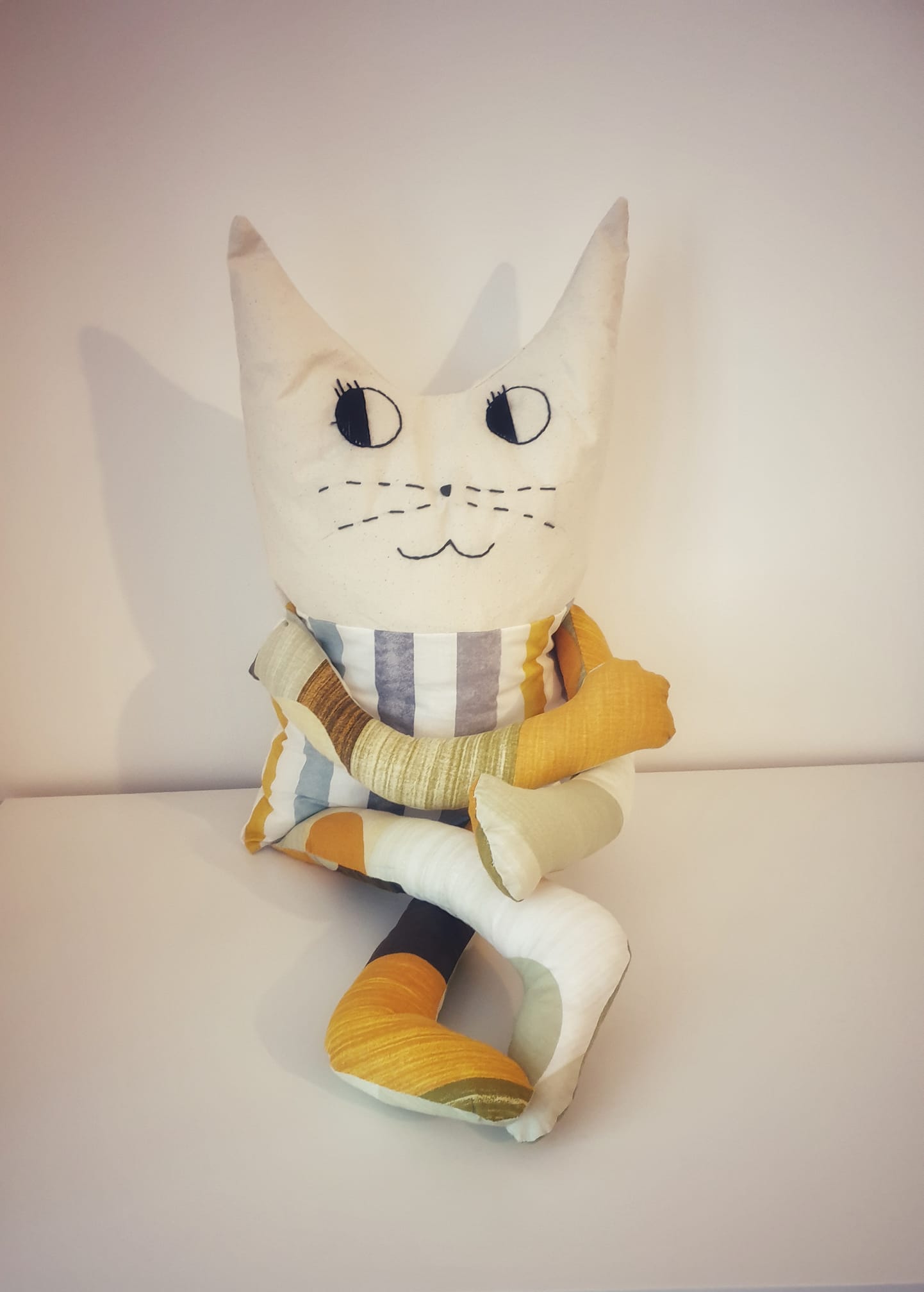 Figuri de pisici prietenoase, jucăușe, somnoroase, mirate te întâmpină de cum pașești pragul acestei case. Din pasiunea pentru design, talentul pentru cusut și nevoile unei tinere mămici, s-au născut pernele-păpușă care transmit o stare emoțională.