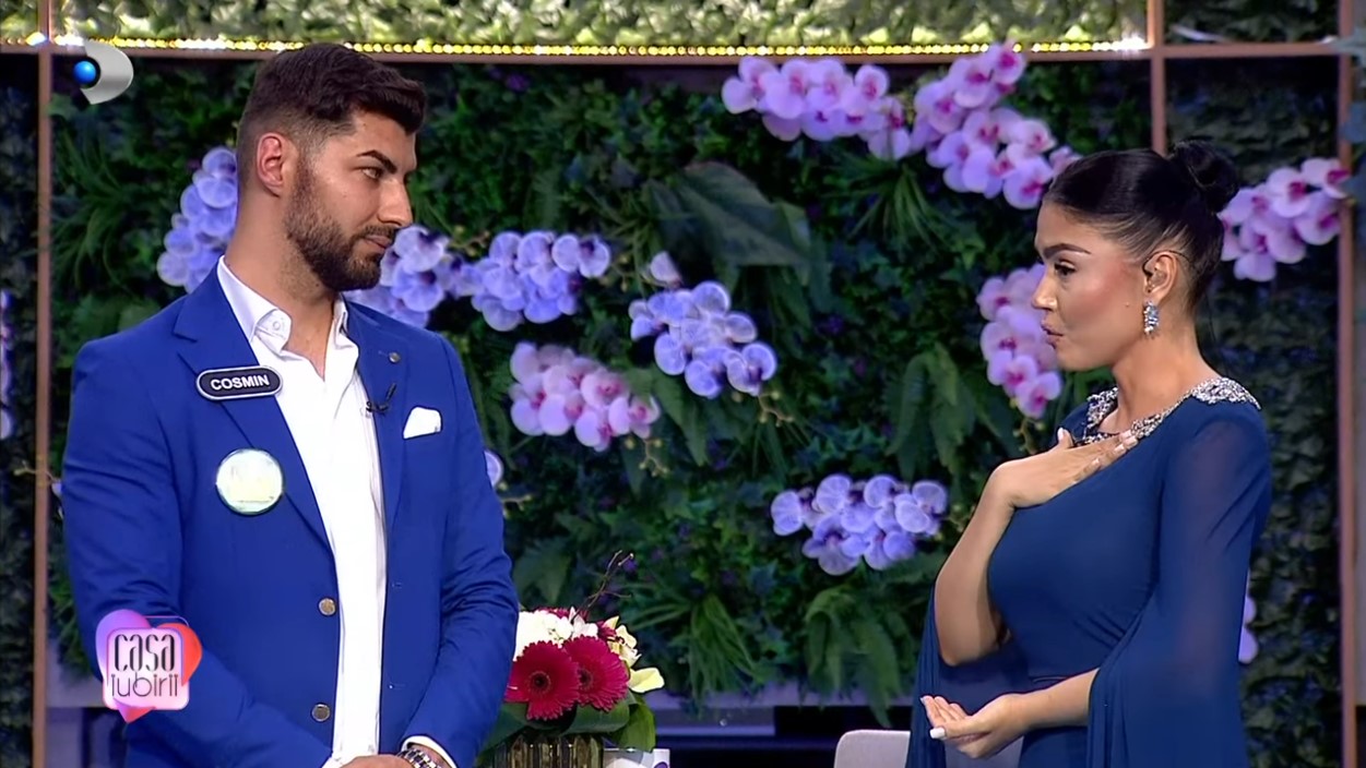 Andreea Mantea: „Pentru că noi, „Casa iubirii”, considerăm că aceste print-screen-uri sunt reale și pentru că sunt informații pe care le știau foarte puțini oameni, spre deloc, cum ar fi cel legat de SMS-uri. Cosmin, cu părere de rău, în această seară părăsești „Casa iubirii” prin descalificare. Ai încălcat regulamentul emisiunii, îmi pare tare rău.”