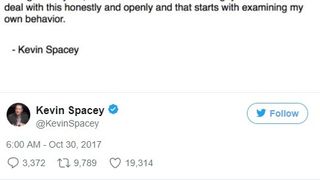 Urmare a acestor acuzatii, Kevin Spacey a distribuit acest tweet: