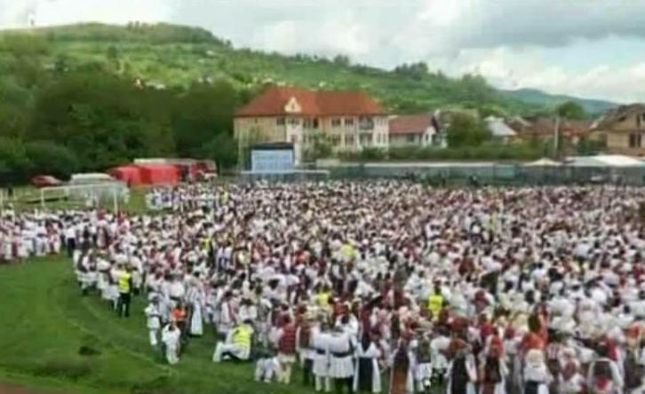 Peste 10.000 de romani imbracati in costume populare au stabilit un nou record. Printre ei s-a aflat si Liviu Dragnea
