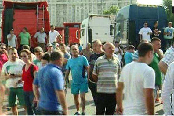 UPDATE 15.30: Autorizatia pentru protestul transportatorilor a expirat la ora 15.00, dar acestia refuza sa paraseasca Piata Victoriei pâna nu primesc un raspuns oficial de la ASF, desi politistii le-au spus ca au la dispozitie doua ore sa elibereze zona. Transportatorii au avut autorizatie pentru a protesta intre orele 9.00 si 15.00 in Piata Guvernului.