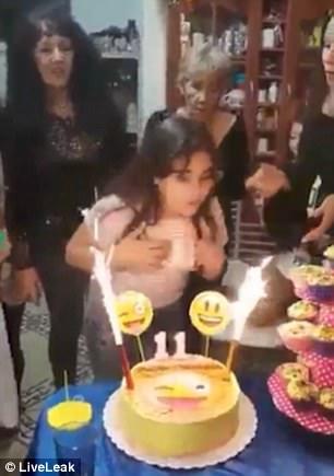 Imediat dupa ce fetita de 11 ani a suflat in lumari, invitatii i-au pulverizat in fata mai multe spray-uri cu sfoara colorata pentru petreceri. Sfoara a luat foc de la artificiile aprinse care se aflau pe tort si intr-o secunda parul fetei s-a aprins ca o torta.