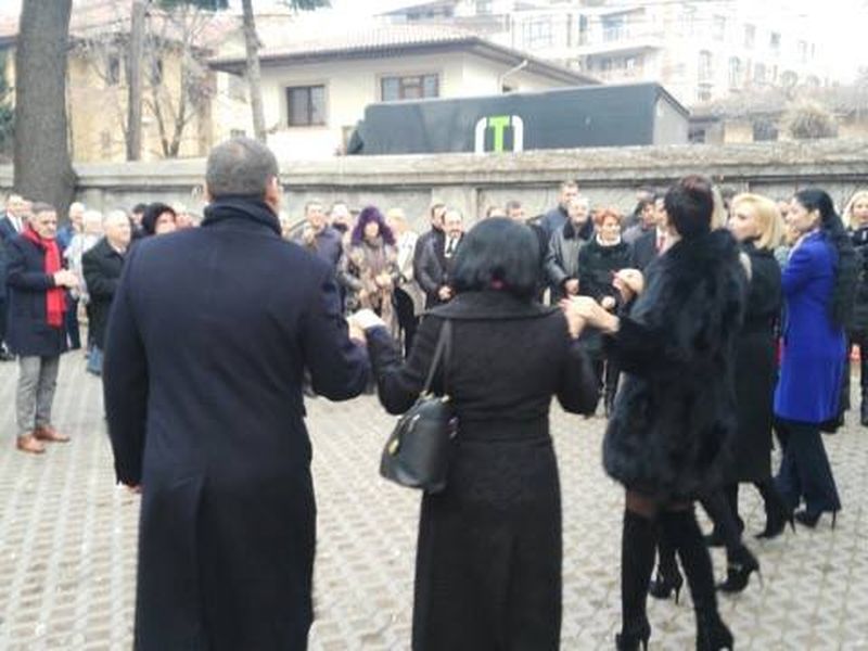 5 din 7 | Petrecere mare la sediul PSD din Bucuresti. Mai multi copii au venit sa colinde, membrii partidului au incins hora in curte. Imagini de acolo