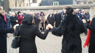 3 din 7 | Petrecere mare la sediul PSD din Bucuresti. Mai multi copii au venit sa colinde, membrii partidului au incins hora in curte. Imagini de acolo