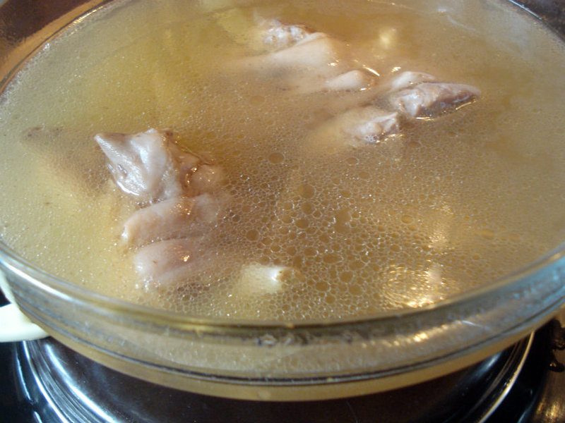 Capul de porc şi picioarele se spala foarte bine şi se pârlesc la flacăra aragazului. Apoi se pun la fiert în apă rece, cu sare, alături de carne. Se ia spuma ori de câte ori se formează şi se adaugă apoi legumele şi foile de dafin. Se lasă la fiert la foc mic aproximativ 4 ore, până ce carnea cade de pe oase.