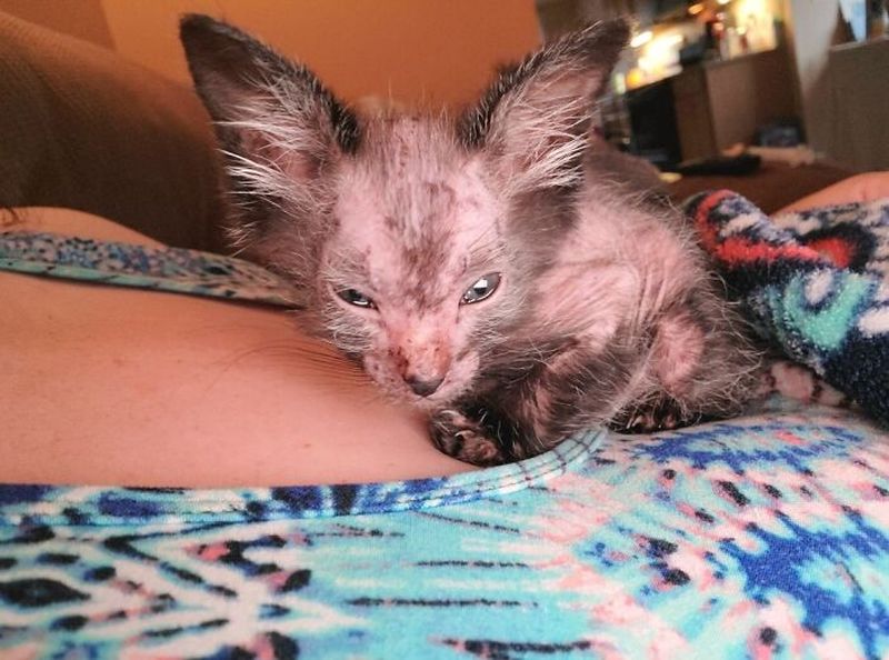 O femeie care credea că pisoiul ei este „bolnav” a fost șocată să descopere că animăluțul simpatic este, de fapt, un exemplar din specia rară "pisică-lup" sau vârcolac. Este o mutație genetică extrem de neobișnuită care duce prețul unei astfel de feline la mii de dolari.