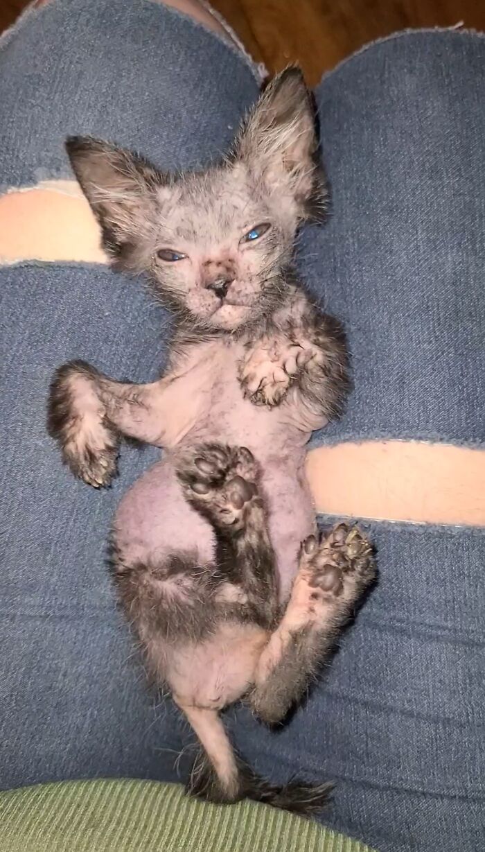 Americanca nu a putut înțelege de ce Gracie arăta atât de diferit de ceilalți pui de pisoi. Bree spune că a început să caute pisici cu aspect similar și a dat peste informații despre o pisică-lup, uneori numită „pisică vârcolac” sau Lykoi.
