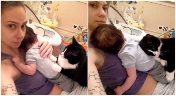 Iar comportamentul felinei nu s-a schimbat deloc nici dupa nasterea bebelusului. Pisica este foarte atenta la toate miscarile copilului, incercand sa-l protejeze si chiar isi trezeste stapana in timpul nopţii, in momentele in care copilul incepe sa planga.
