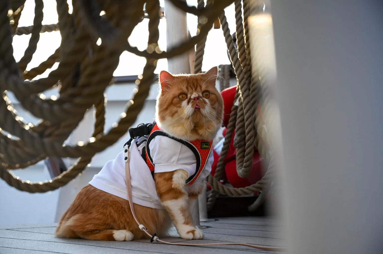 Mahmud, un motan de doar patru luni, a purtat pentru prima dată ham în această croazieră.