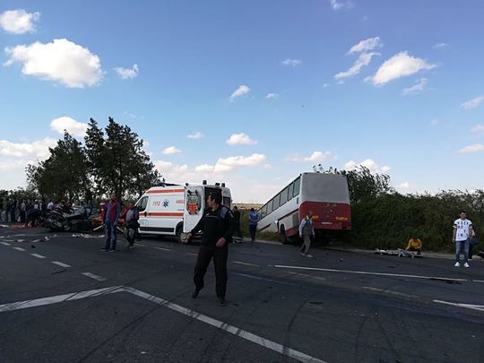 2 din 2 | Plan Rosu de interventie in Constanta: Accident intre un autobuz si un autoturism. Trei persoane au murit, alte sapte - opt fiind ranite