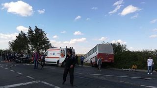 1 din 2 | Plan Rosu de interventie in Constanta: Accident intre un autobuz si un autoturism. Trei persoane au murit, alte sapte - opt fiind ranite