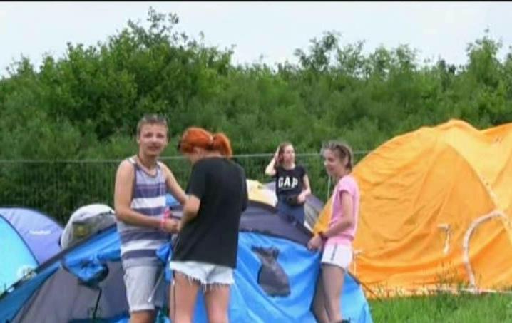 „Suntem foarte obositi ca am mers 8 ore cu trenul si asta e grupul nostru de corturi si acum incercam sa ne odihnim, sa mancam si sa ne simtim bine!”, spune o tanara.