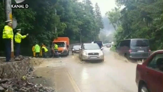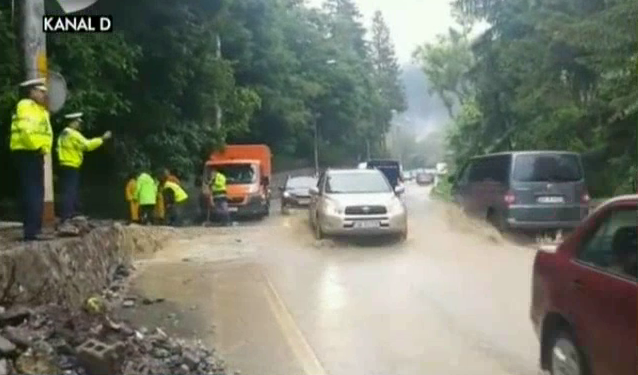 Imaginile vin de pe Valea Prahovei, din dreptul localitatii Posada, unde ploile torentiale aproape ca au blocat drumul spre statiunile montane. Ruperea de nori a dezlantuit suvoaiele de apa din munti, care au navalit cu furie pe carosabil.