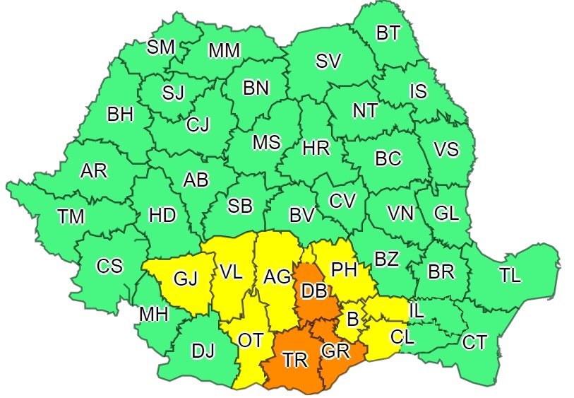 În cursul dimineții de joi, ANM a emis avertizări nowcasting COD ROȘU de vijelii pentru zone din județele Giurgiu și Teleorman. Furtunile nu au durat mult timp, dar au fost extrem de intense, iar astfel de avertizări pot să mai apară pe parcursul zilei de azi.