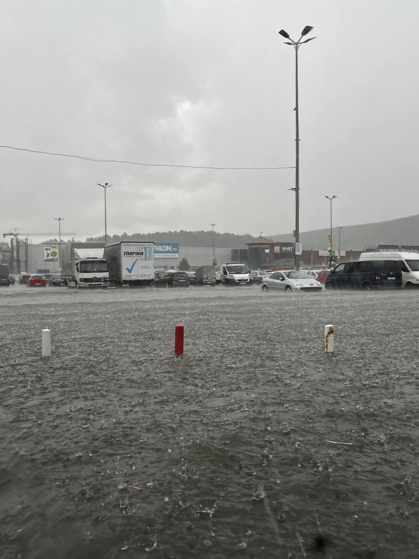 Parcarea unui mall a fost inundată în urma ploilor torențiale