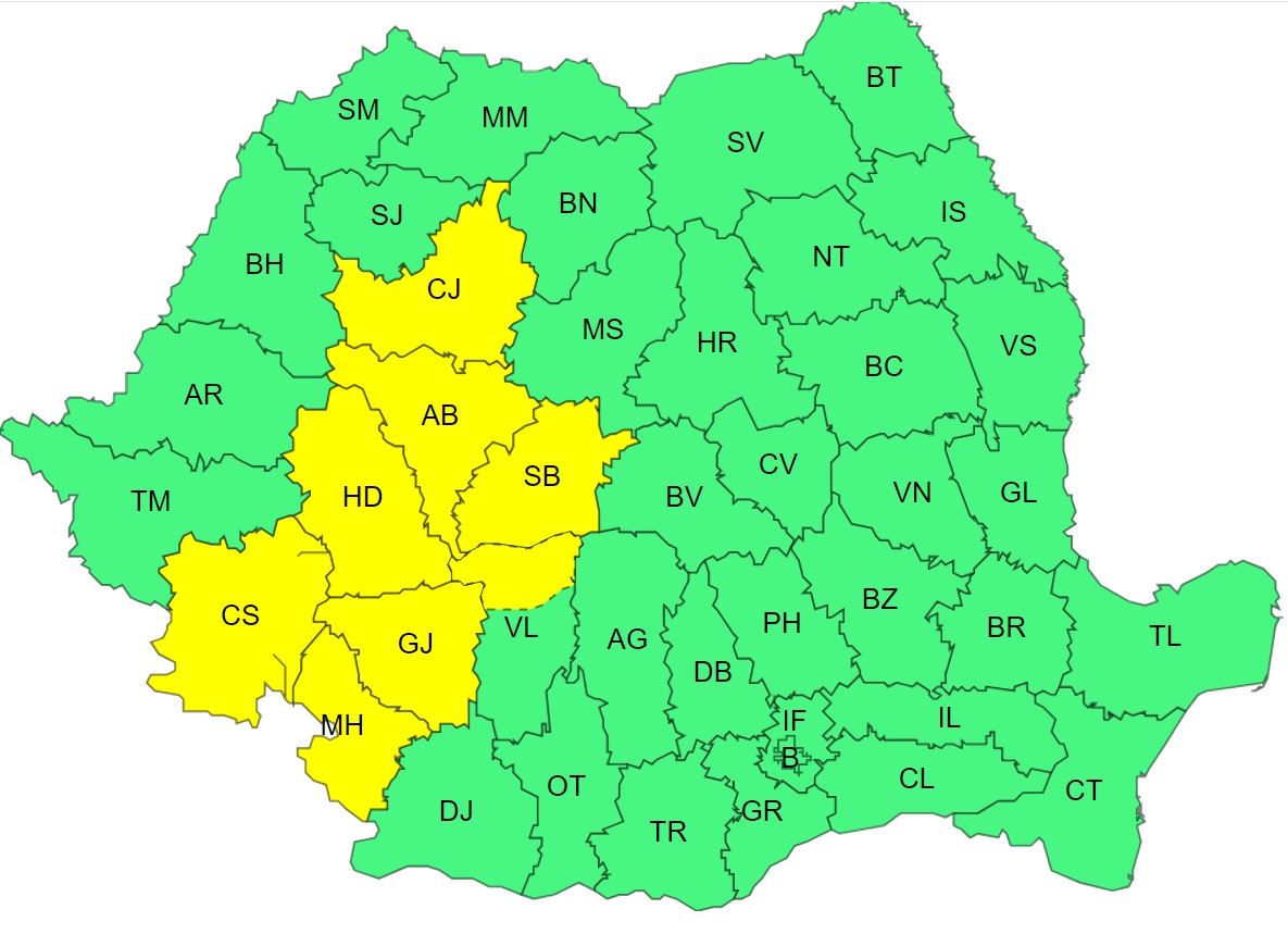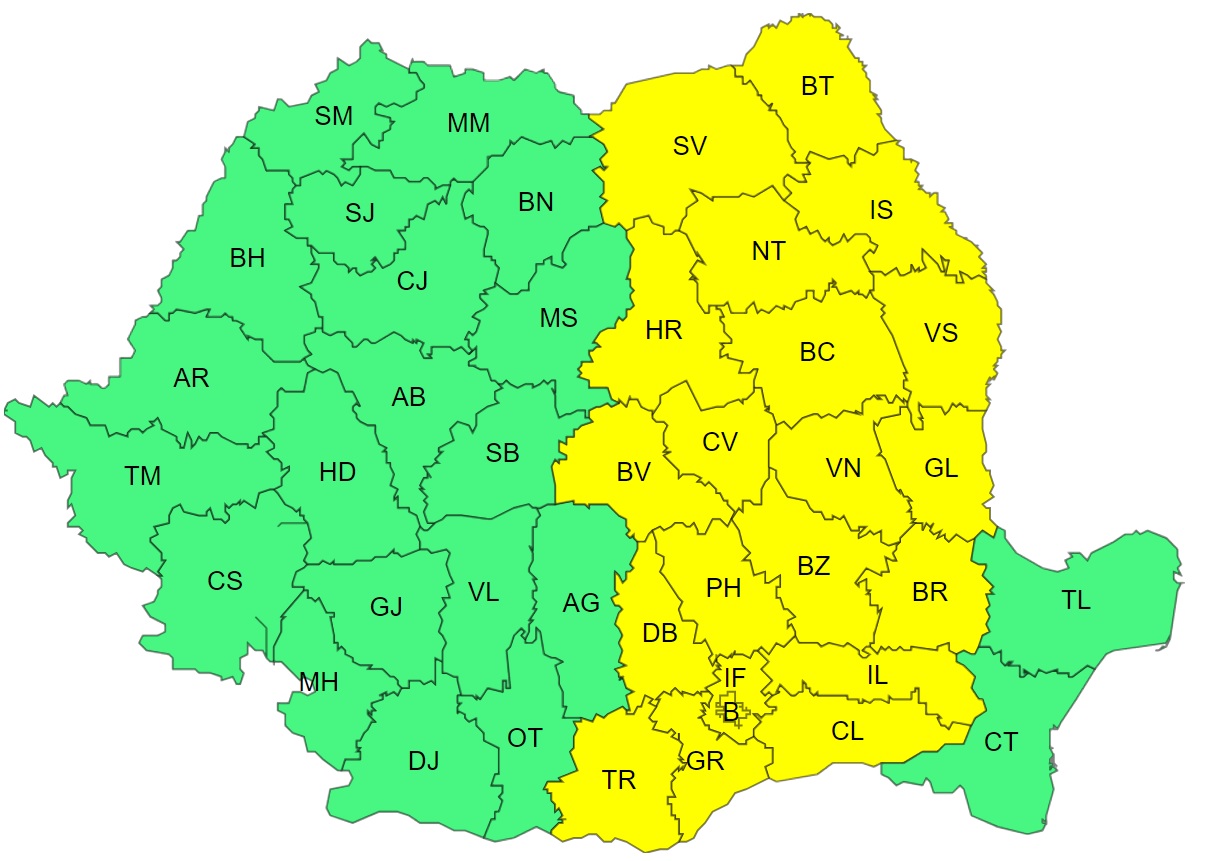 Administrația Națională de Meteorologie (ANM) a emis vineri dimineața noi mesaje de avertizare COD GALBEN cu privire la fenomene meteo extreme care lovesc teritoriul României, de la vest spre est, în următoarele trei zile.