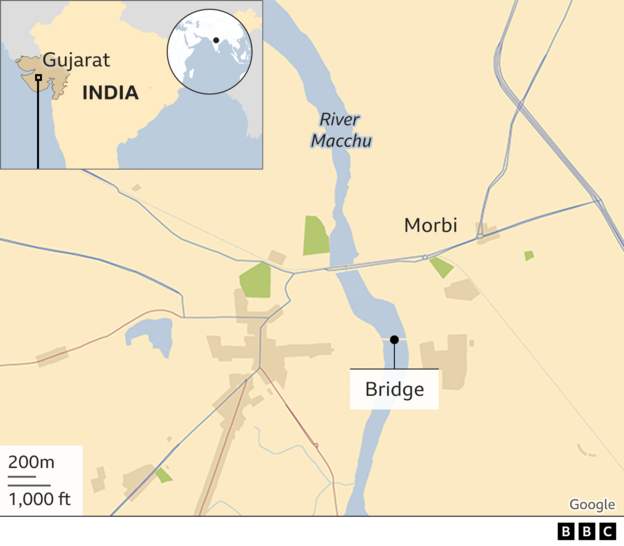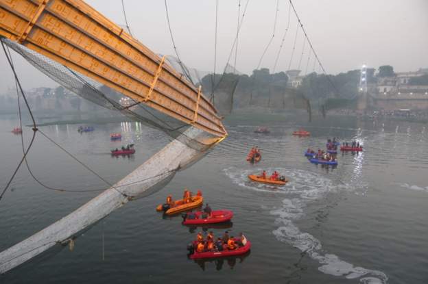Operațiunile de salvare sunt încă în desfășurare în districtul Morbi din Gujarat, unde cel puțin 141 de persoane au murit după ce un pod care data din epoca colonială s-a prăbușit duminică seara.