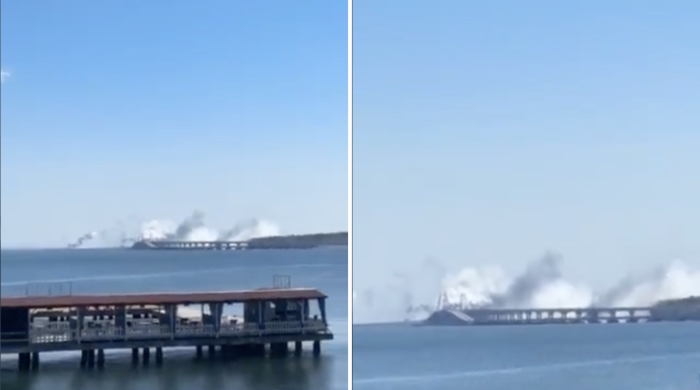 Russian media publish a video of explosions on the Kerch Bridge. pic.twitter.com/NZ1KQNFx4G