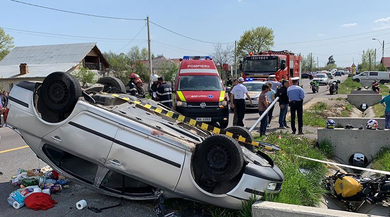 Un autoturism Skoda şi o motocicletă s-au lovit. Motociclistul, Adi Luca în vârstă de 32 de ani este poliţist şi acesta a decedat.