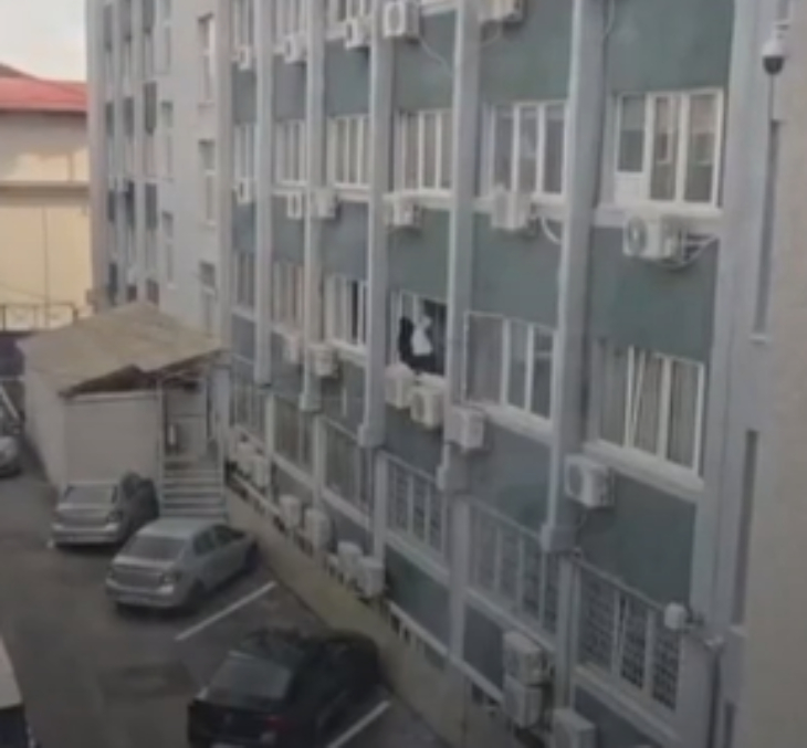Conform imaginilor, femeia se afla la unul dintre etajele clădirii, ieșită pe fereastră, în încercarea de a șterge geamul pe exterior.