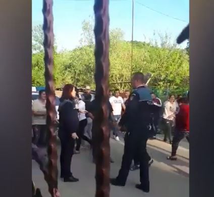 cei doi au cerut întăriri şi apoi au încercat să calmeze spiritele. La un moment dat, poliţista a fost trasă de păr şi lovită în burtă.