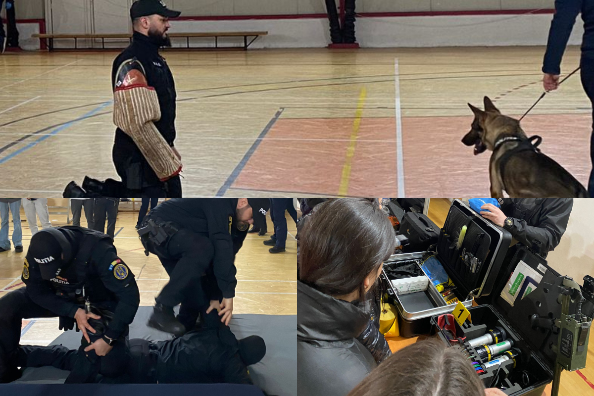 Serviciul Criminalistic și-a prezentat activitatea, arătând și practic, spre fascinația copiilor, trusa criminalistică de cercetare la fața locului, detectorul de metale, trusa Crime Light cu 3 surse de lumină pentru identificarea urmelor papilare și alte probe biologice. Elevii au avut ocazia să preleveze amprente folosindu-se de pulberea neagră magnetică.