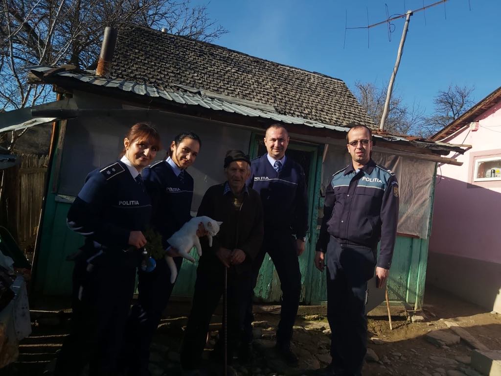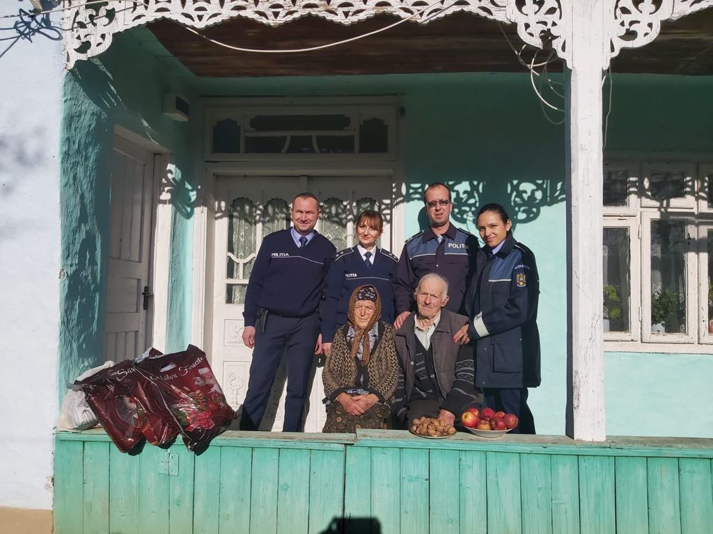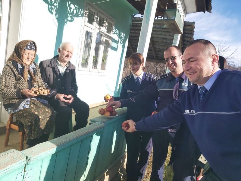 După datina străbună păstrată cu sfințenie la casele colindate, polițiștilor le-au fost oferite la plecare nuci, mere și căldura unei îmbrățișări a timpului transpus în ființa bătrânilor ale căror povești de viață par desprinse dintr-un alt timp și spațiu.
