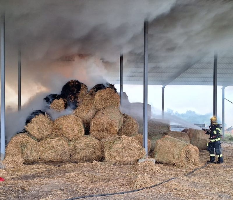 Un apel prin 112 a semnalat izbucnirea unui incendiu la mai mulți baloți de lucernă, localitatea Boiu, comuna Ciumeghiu.