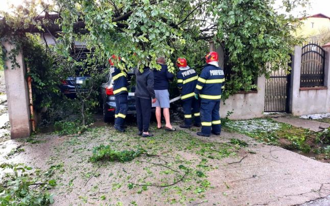 Un alt copac a căzut peste un autoturism în localitatea Ghimpați, iar acțiunile sunt în curs de desfășurare.