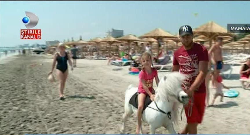 In goana dupa bani castigati la negru, niste indivizi si-au scos poneii pe plaja din Mamaia, desi legea interzice accesul animalelor pe plaja. Bietii cai stau sub soarele arzator cat e ziua de lunga, iar stapanii trag de ei ca sa-i plimbe pe copii.