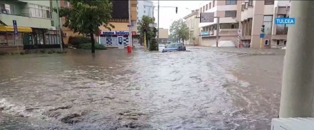 Inundatii de proportii la Tulcea, unde canalizarea nu a facut fata dupa o ploaie torentiala de jumatate de ora.