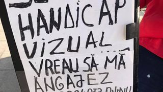 Nu vede deloc cu ochiul drept, iar cu ochiul stang foarte putin. Nu a lucrat niciodata pana in acest moment din cauza starii lui, dar termina curand un curs de masaj. si-ar dori sa munceasca in acest domeniu, impachetari sau call center in limba Romana. (Este deschis la orice alt job care i s-ar putea potrivi)