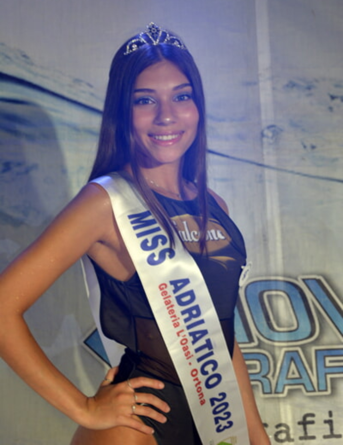 Angelina Andreiana a fost încoronată Miss Adriatico, primind o panglică inscripționată cu titlul și un trofeu, ambele fiind oferite de gelateria L’Oasi, notează jurnaliștii Chieti Today.