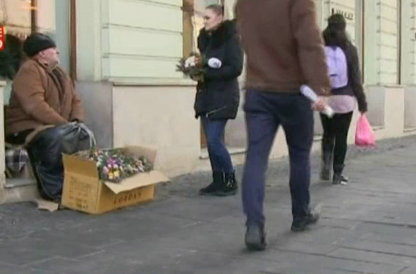 Nu are bani de platit taxe la piata asa ca a ales sa stea in centrul orasului. Ar avea nevoie de o locuinta, insa spune ca singurul ajutor pe care i-l putem oferi este sa-i cumparam florile. Daca treceti prin Cluj, puteti sa-i faceti un bine acestui om.