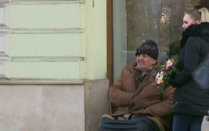 Langa zecile de buchete colorate, asteapta inghetat nea Ioan. Un bunic de aproape 80 de ani care smulge lacrimile a mii de oameni pe internet: o tanara l-a vazut in frig, acoperit cu un celofan, si n-a putut sa treaca pe langa el, nepasatoare!
