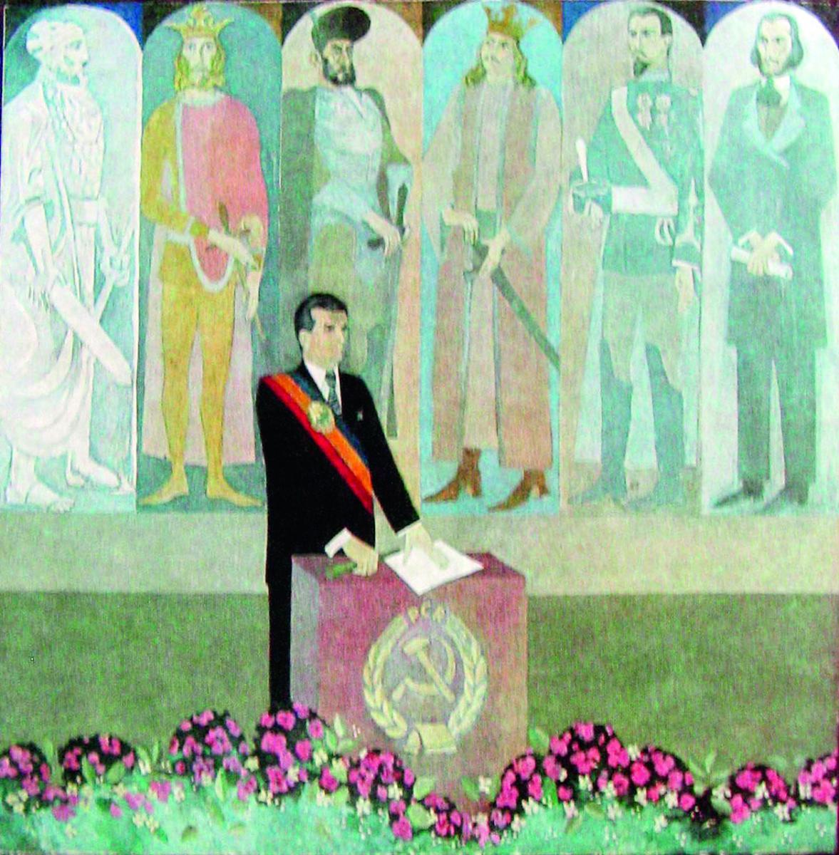 2 din 4 | Povestea celui mai nebun tablou al lui Nicolae Ceausescu! Artistul plastic l-a pictat de dictator in timp ce acesta ciocnea un pahar cu vin cu Stefan cel Mare!