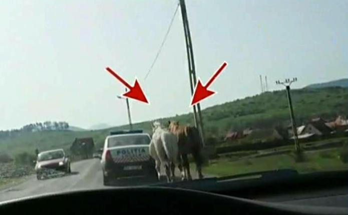 Prinsi in fapt, caii au fost "arestati", pe loc, de politia locala. Cum agentii n-au duba speciala, suspectii cu patru picioare au fost inhamati la masina institutiei.