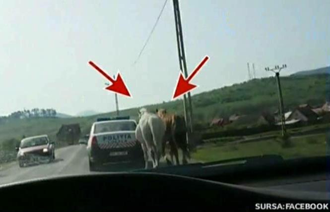 Povestea din spatele fotografiei care a amuzat internetul. Motivul pentru care politistii locali din Brasov au arestat doi cai