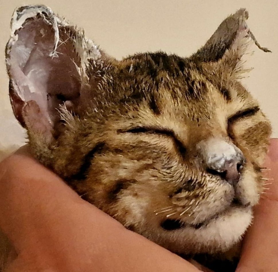 Ce nu se prea vede în această fotografie e atitudinea. Deși a venit către oameni în starea descrisă mai sus, nu s-a plâns deloc, nu a mieunat, nu a zis nimic, n-a cerut nimic.