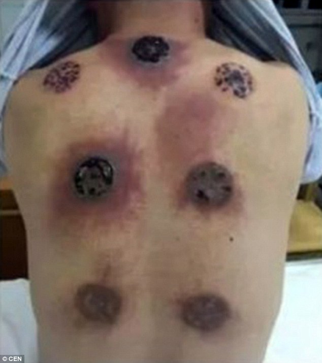 Li spune ca in timpul ultimelor zile, au inceput sa ii apara basici pe locurile in care erau puse ventuzele. In loc sa opreasca tratamentul, barbatul i-a cerut sotiei sa ii sparga basicile si apoi sa il frece pe spate cu ulei.Rezultatele au fost infioratoare. Medicii i-au spus ca sufera de o infectie bacteriana.