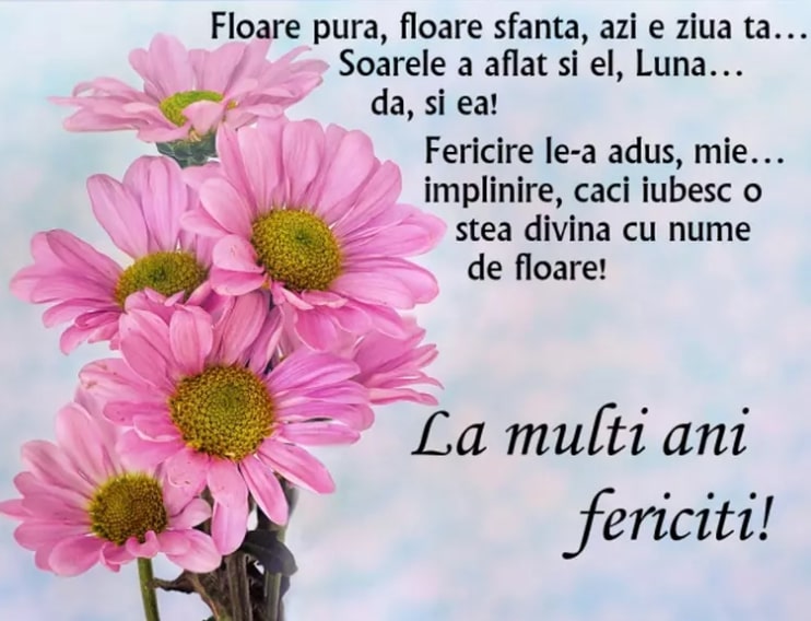Drumul vieții tale să fie presărat cu flori: cu ghiocei ca să îți păstrezi sufletul tânar și curat, cu trandafiri ca să fii veșnic iubită și cu margarete pentru a-ți aminti mereu să zâmbești. La mulți ani!