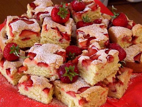 Prăjitură pufoasă cu căpșuni. Un blat pufos și aromat care are în interior bucăți de căpșuni poate fi desertul perfect pentru a-i îndulci pe cei dragi.