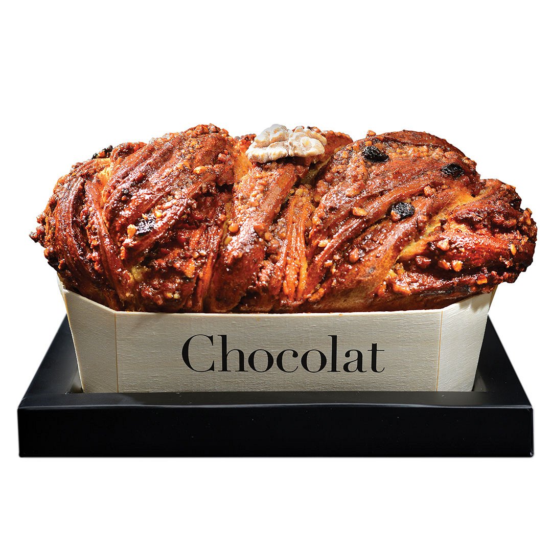 Iti plac cozonacii diferiti? Ce spui de un Cozonac Pufos? Chocolat iti propune un cozonac cu aluat pufos, crema de ciocolata, nuci, stafide si rom si glazurat cu ciocolata cu lapte si nuci. Acest cozonac are 1,5 kg si este suficient pentru o familie pentru masa de Paste, deoarece stim ca nu vrei sa faci excese.